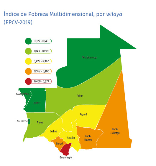 Los resultados mostraron, por ejemplo, que para reducir la pobreza en un 30% en la wilaya de Guidimagha, la región con la mayor prevalencia de pobreza monetaria y multidimensional en el país, sería necesario: i) mejorar la cobertura del seguro de salud para el 39% de la población pobre y carente; ii) garantizar la finalización de la educación básica del 42% de la población pobre y carente; iii) promover el empleo entre el 30% de la población pobre y subempleada, particularmente mujeres y jóvenes menores de 35 años.